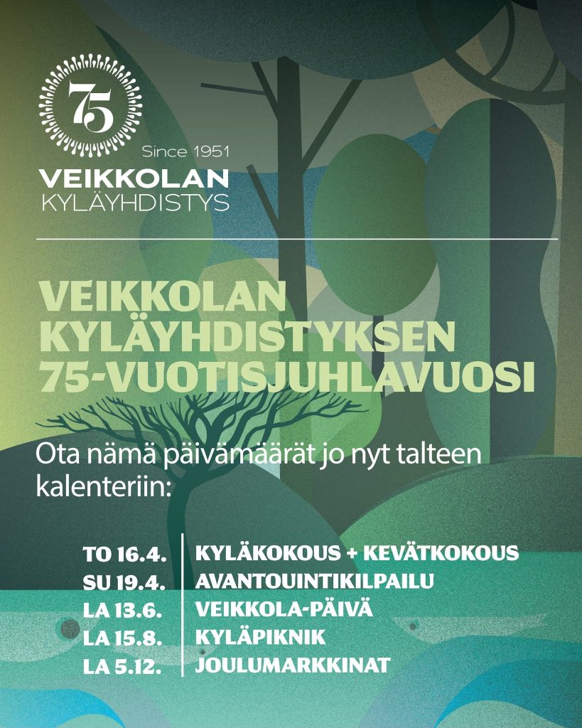 Tuleva vuosi tuo mukanaan useita kylää kokoavia hetkiä – ja samalla juhlimme Veikkolan Kyläyhdistyksen 75-vuotisjuhlavuotta.
